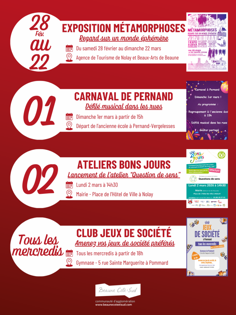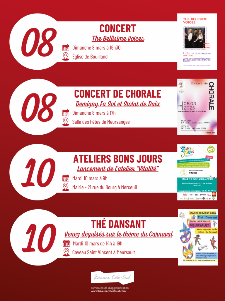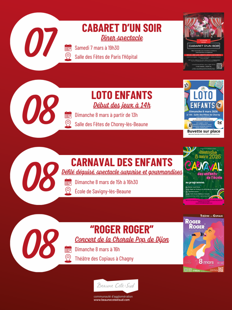 Entre soirées festives, concerts et animations culturelles, les communes de l’Agglomération vous ont préparé un mois de mars riche en évènements.