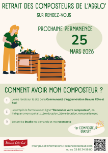 Pour obtenir ou renouveler un composteur vous devez effectuer une demande et prendre rendez-vous en ligne sur : CA Beaune Côte et Sud – Demandez votre composteur · demarches.adullact.org